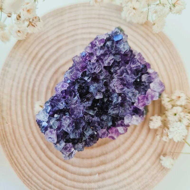Tajemný ametyst je po staletí považován silný ochranný kámen, který kdysi používali proti nespavosti a nočním můrám. Navozuje klidný spánek, potlačuje stres a napětí a navozuje klid. Proto je vhodný do ložnic, pracoven, maséren, při meditacich. Čistí a harmonizuje krční a korunní čakru.
