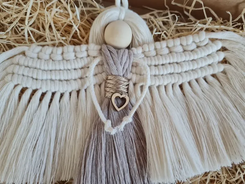 Anděl macramé JANET vhodný jako dárek pro kamarádku, maminku, babičku, či učitelku ve školce. Krásně se bude vyjímat třeba na vašem vánočním stromečku nebo na dveřích pokoje, či na zdi v dětském pokojíčku.