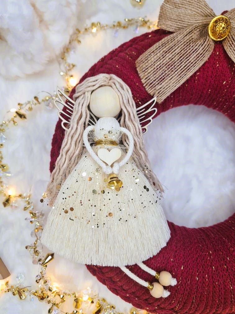Anděl macramé VÁNOČNÍ SEN s dřevěnými křídly vnese vánoční atmosféru, klid a pohodu do každého domova! Vhodný jako dárek pro kamarádku, maminku, babičku, či učitelku ve školce. Krásně se bude vyjímat třeba na dveřích pokoje, či na zdi v dětském pokojíčku.