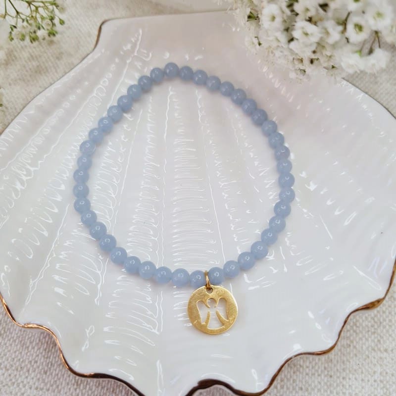 Angelit je jedním z kamenů vědomí pro nový věk. Symbolizuje mír a bohatství. Pomáhá napojit se na říši andělů, prohlubuje naladění se na mysl a zvyšuje vnímavost. Díky angelitu budete soucitnější a smířlivější - zejména k věcem, které nelze změnit. Mírní duševní bolest, navozuje hluboký pocit klidu a míru. Zvyšuje úroveň vědomí.