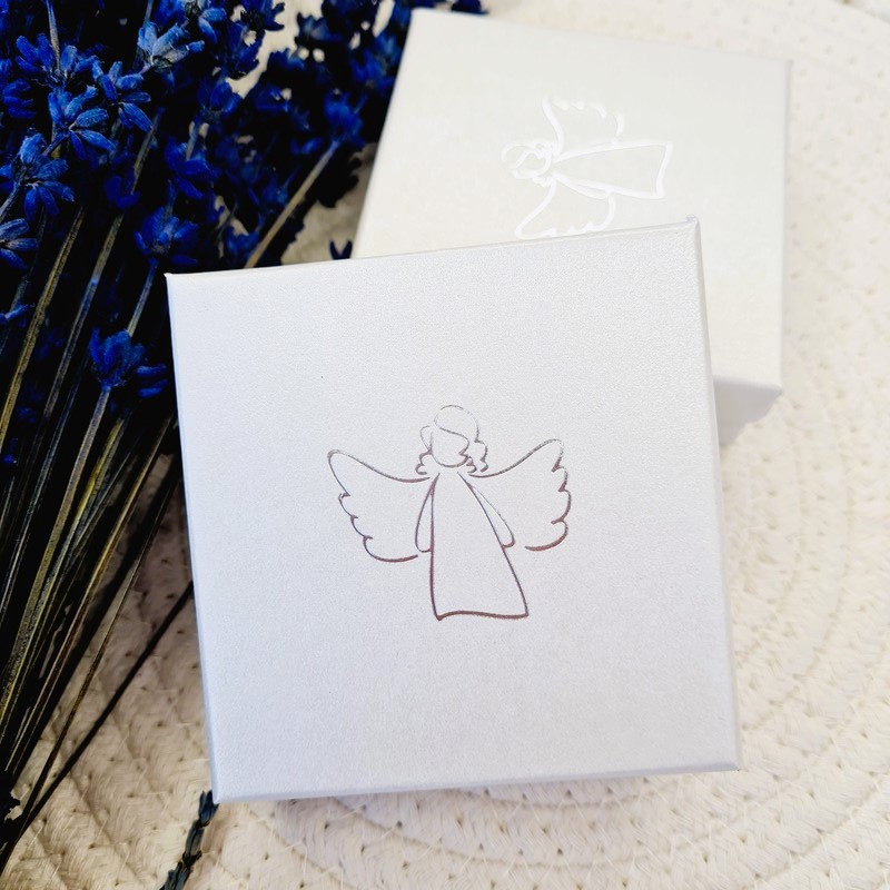Dárková krabička na šperky. Barva BÍLÁ s potiskem anděla (stříbrná barva)..