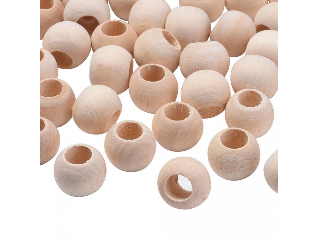 Dřevěné korálky nelakované Ø20 mm - velký průvlek
