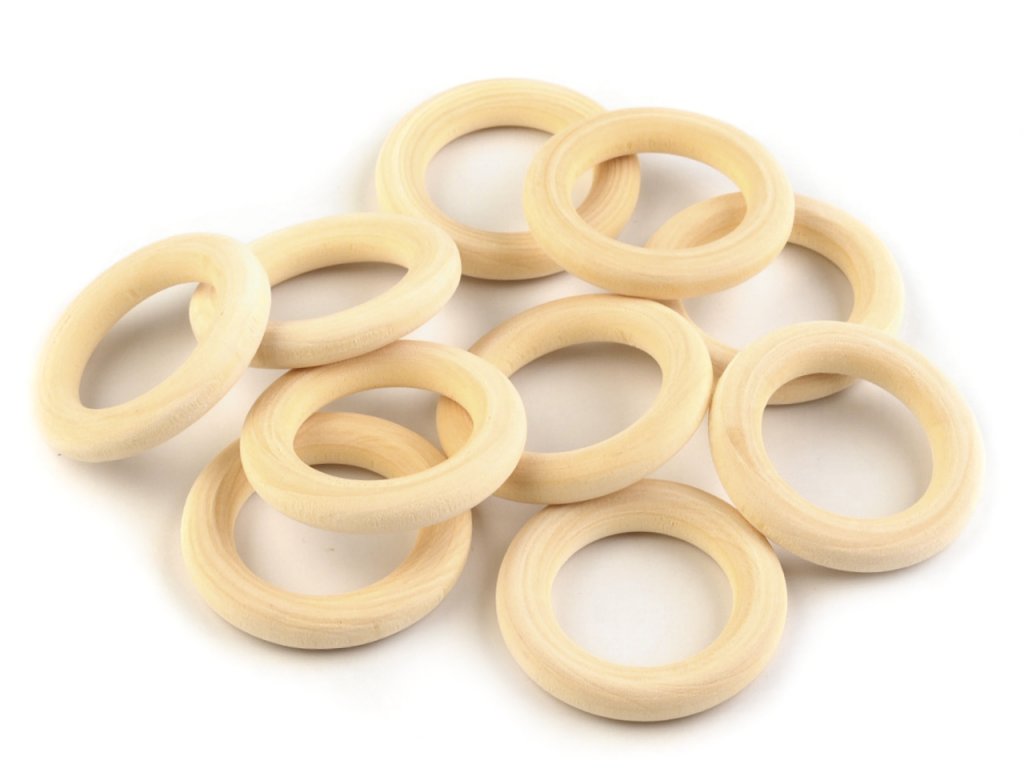 Přírodní dřevěné kroužky pro tvorbu dekorací jako je například macramé. Jsou vhodné také na výrobu náhrdelníků, k uchycení záclony nebo závěsu apod. Kroužky jsou nelakované, tudíž na ně můžete bez potíží malovat.