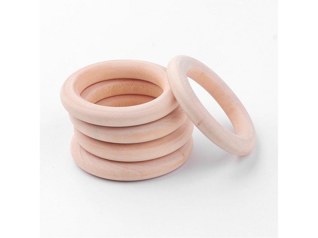 Přírodní dřevěné kroužky pro tvorbu dekorací jako je například macramé. Jsou vhodné také na výrobu náhrdelníků, k uchycení záclony nebo závěsu apod. Kroužky jsou nelakované, tudíž na ně můžete bez potíží malovat.