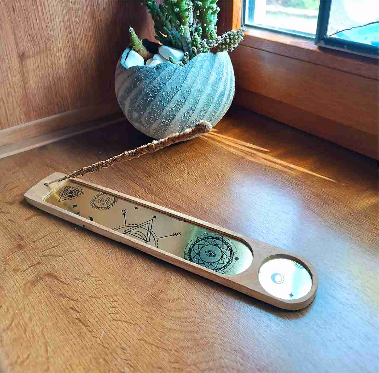 Dřevěný stojan na vonné produkty – zlatý – magic Sagrada Madre
