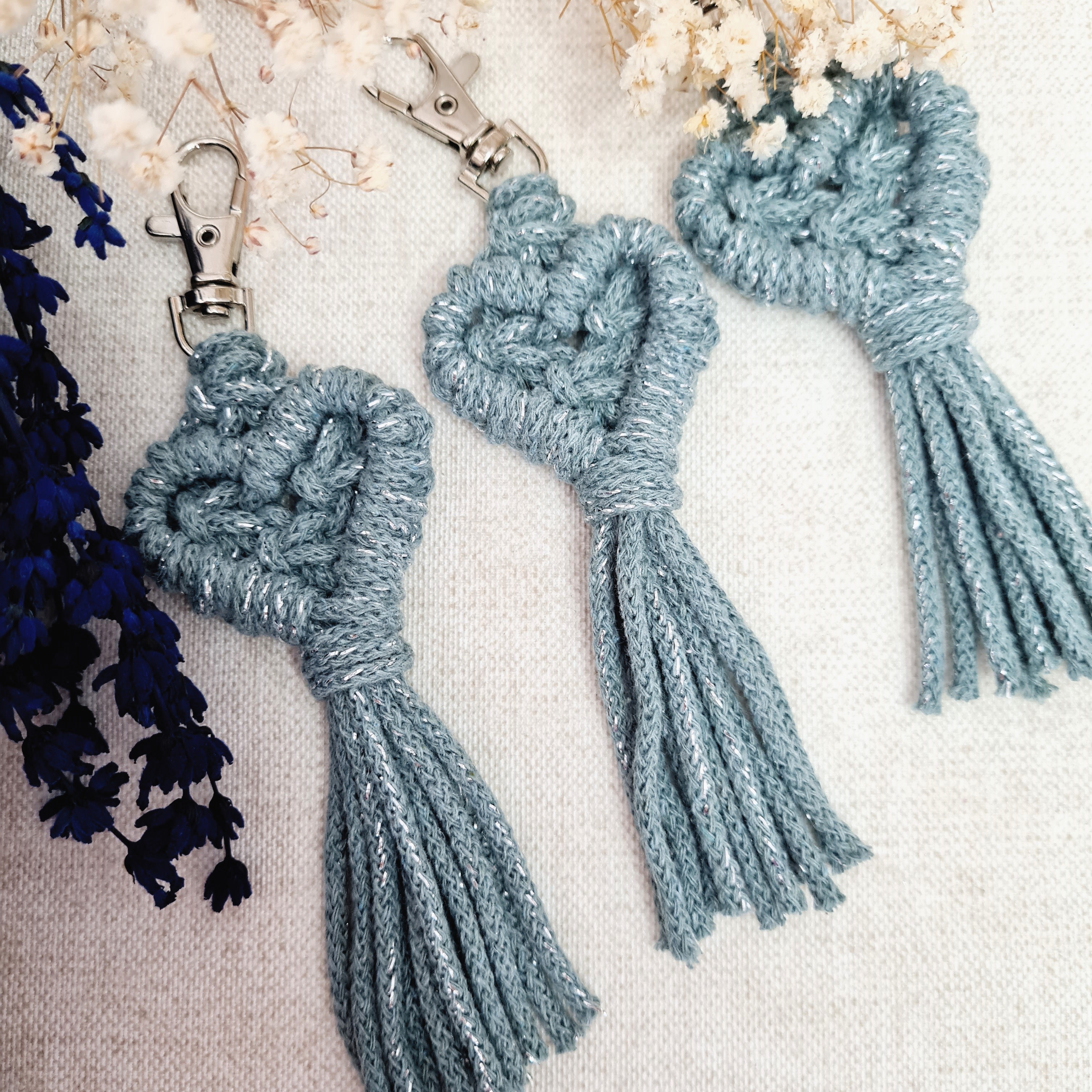 Klíčenka macramé SRDCE malé Laurel se stříbrnou nitkou