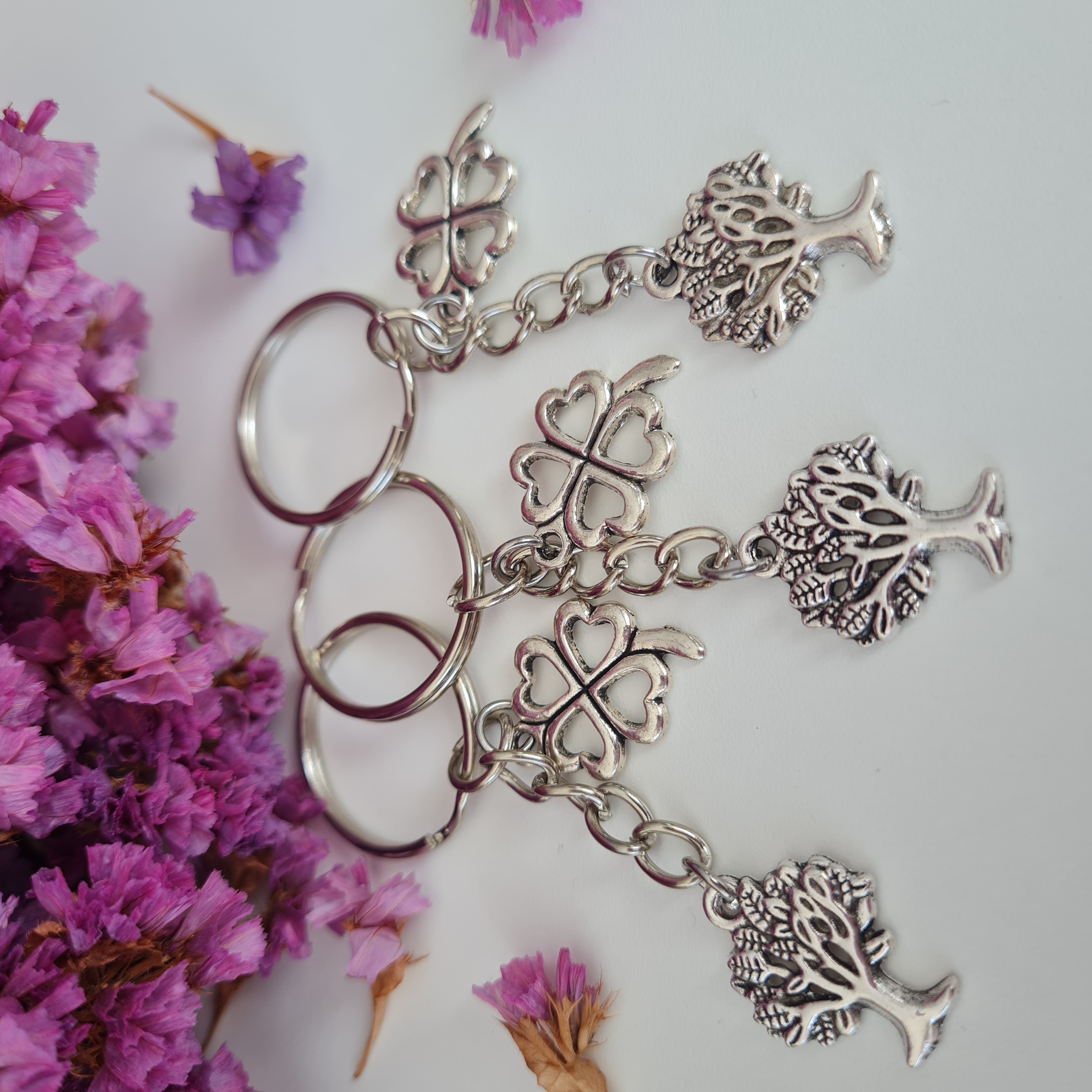 Klíčenka stromeček života (velikost 17x21 mm) se čtyřlístkem (velikost 15x21 mm).