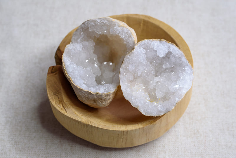 Křišťálová geoda - obě půlky rozpůlené přírodně s krásnými křišťálovými krystaly z Maroka.