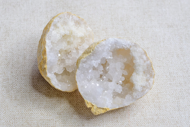 Křišťálová geoda - obě půlky rozpůlené přírodně s krásnými křišťálovými krystaly z Maroka.