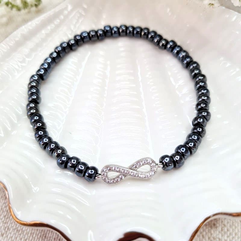 Náramek nekonečno s miyuki korálky v barvě hematitu