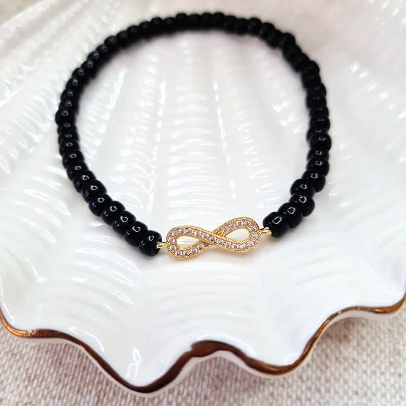 Náramek nekonečno s miyuki korálky v černé barvě