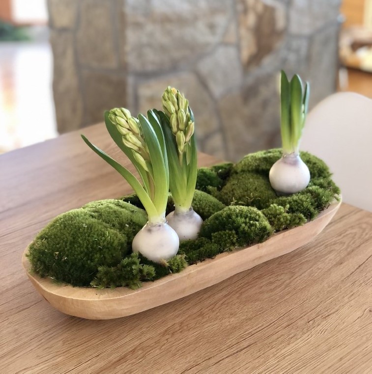 Pokud si chcete svůj domov ozdobit jarní dekorací, postačí vám k tomu právě tato mísa, pár kousků mechu a hyacinty... = dokonalá dekorace na toto období!