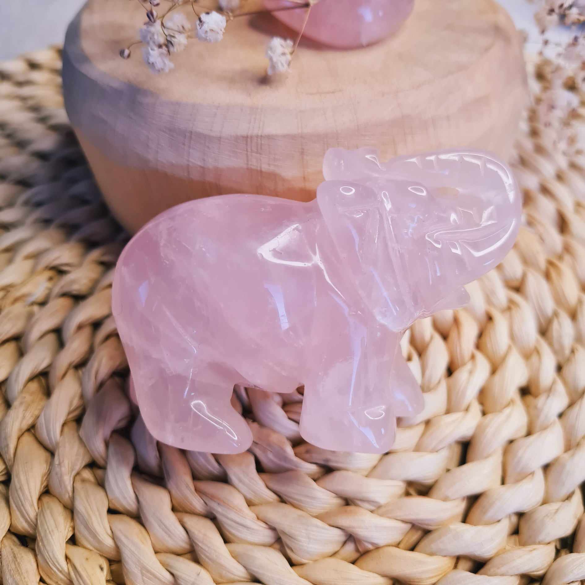 Růženínový slon 7,5 cm ručně broušený (sebeláska, vztahy)