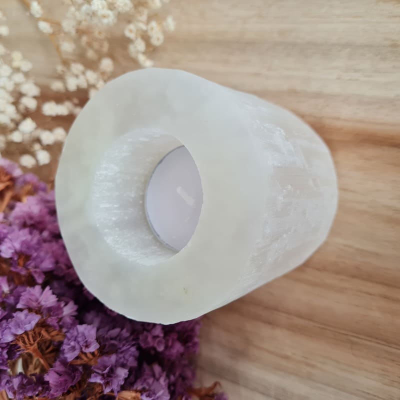 Svícny ze selenitu v sobě udržují a zesilují energii, rozptylují ji a změkčují, umožňují proudit energii do okolního prostředí, pohlcují negativní energii a velmi účinně čistí místnosti.