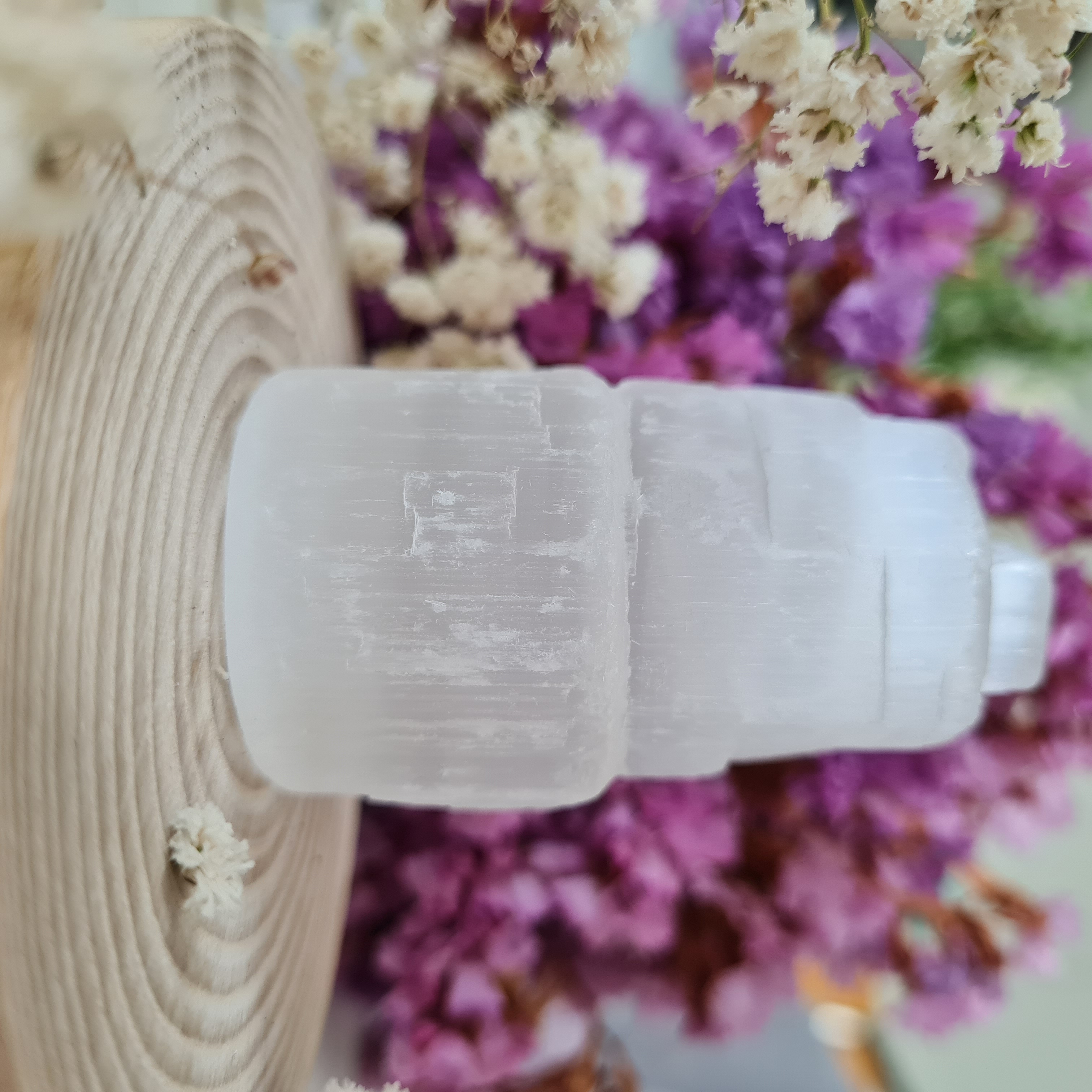 Surový selenit je dobroušený do tvaru věže. Každý kus je jiný, uvedené velikosti je pouze orientační.