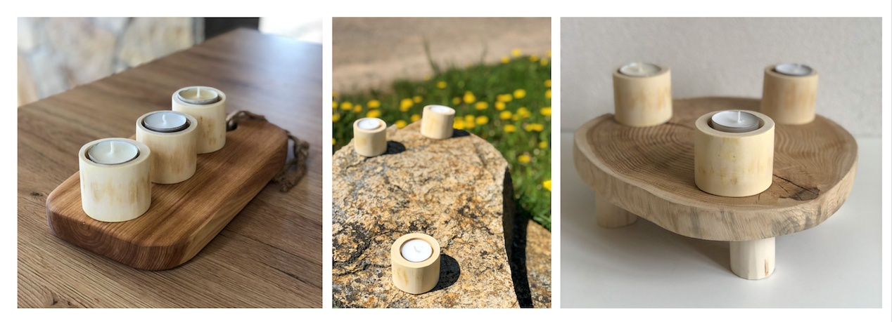 POZOR: Svícny slouží pouze jako dekorace, dřevo je vysoce hořlavé a svíčku je velice nebezpečné zapalovat.