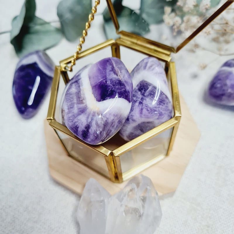 Ametyst je je považován za silný ochranný kámen, který kdysi používali proti nespavosti a nočním můrám. Navozuje klidný spánek, potlačuje stres a napětí, a navozuje klid. Proto je vhodný do ložnic, pracoven, maséren, při meditacich. Čistí a harmonizuje krční a korunní čakru.