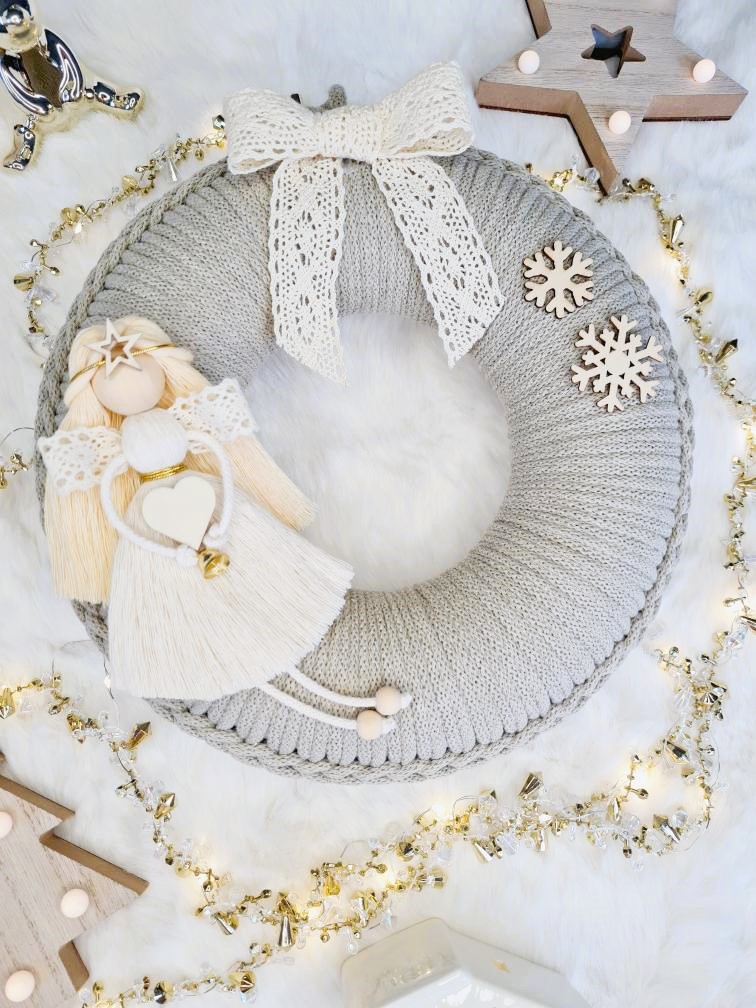 Věnec macramé Pale Olive s andílkem v krémových satičkáchskladem872 Kč/ ks